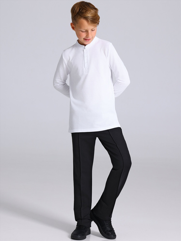 Брюки для мальчика выполнены из футера - тонкого хлопкового полотна с содержанием полиэстера. Изделие на эластичном поясе, имеет удобные карманы и декоративные отстрочки-стрелки. Уход: только машинная стирка (руками не стирать!) при температуре 40 градусов, без предварительного замачивания.