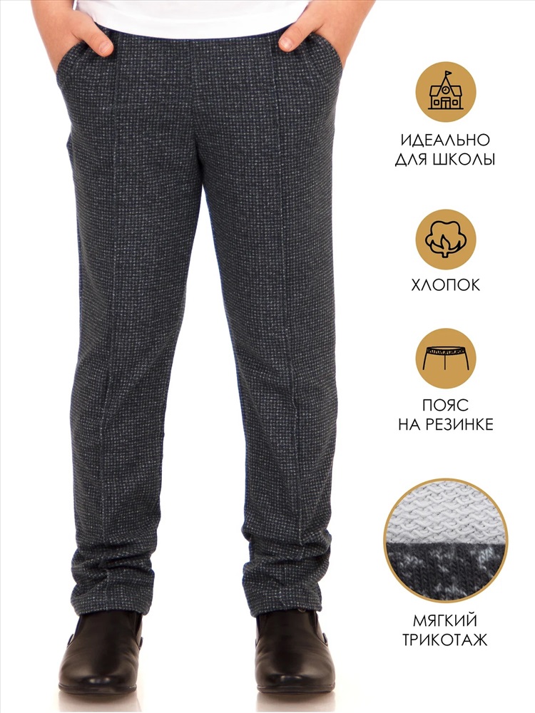Производитель: Апрель; Российский размер: 122; Рост: 122; Возраст: 5-7; Обхват груди: 62; Артикул поставщика: 1ПББ837258н; Ткань: футер; Состав: хлопок 95%, лайкра 5%; Год: 2022; Страна: Россия Брюки для мальчика выполнены из футера - мягкого плотного хлопкового полотна с лайкрой. Изделие на эластичном поясе, имеет удобные карманы и декоративные отстрочки-стрелки. Отличный вариант для школы! Уход: только машинная стирка (руками не стирать!) при температуре 40 градусов, без предварительного замачивания.