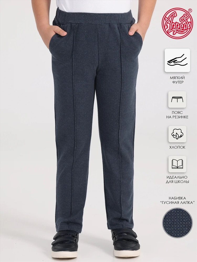 Брюки для мальчика выполнены из футера - плотного хлопкового полотна с лайкрой. Изделие на эластичном поясе, имеет удобные карманы и декоративные отстрочки-стрелки. Отличный вариант для школы! Уход: только машинная стирка (руками не стирать!) при температуре 40 градусов, без предварительного замачивания.