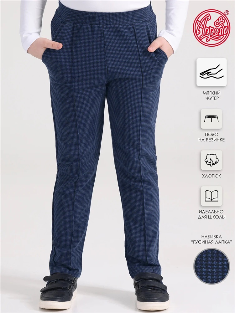 Брюки для мальчика выполнены из футера - плотного хлопкового полотна с лайкрой. Изделие на эластичном поясе, имеет удобные карманы и декоративные отстрочки-стрелки. Отличный вариант для школы! Уход: только машинная стирка (руками не стирать!) при температуре 40 градусов, без предварительного замачивания.