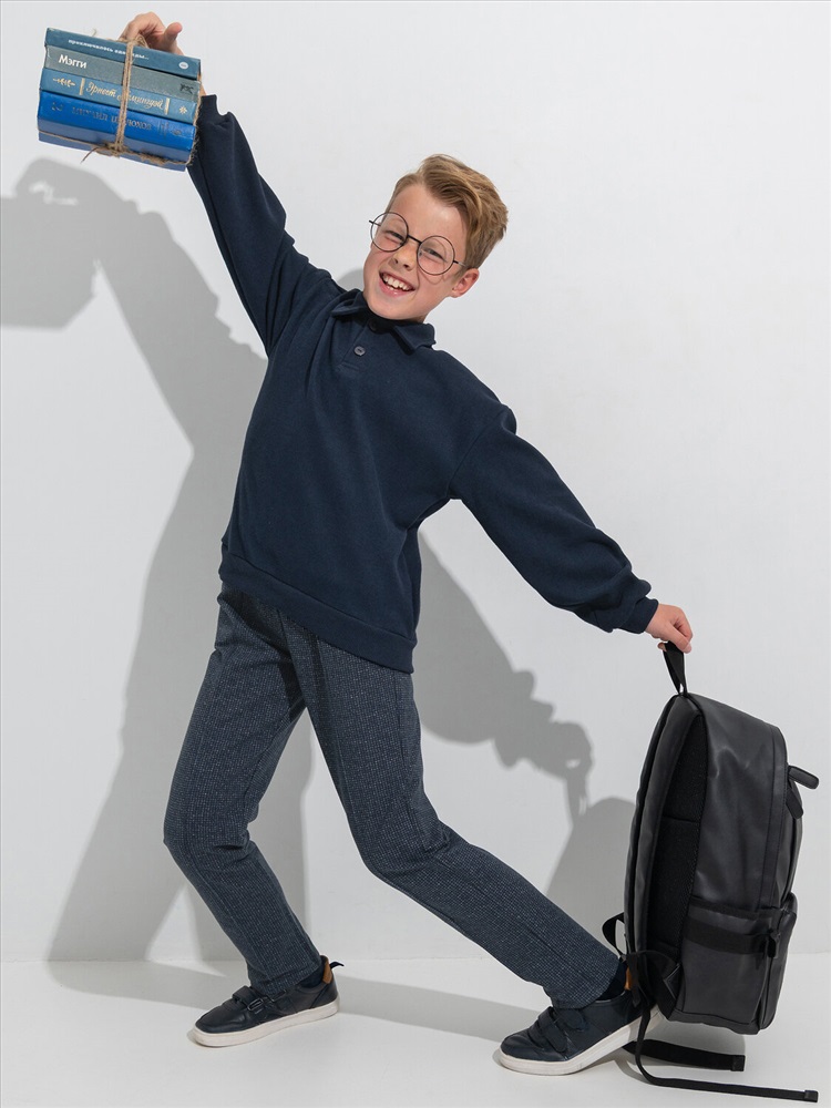 Джемпер для мальчика выполнен из теплого вязаного полотна в рубчик. Изделие с длинными рукавами и манжетами, со спущенным плечом, поясом по низу. Застежка на пуговицы, воротник отложной. Уход: только бережная машинная стирка до 40C (руками не стирать), изделие вывернуть наизнанку, без предварительного замачивания. Барабанная сушка запрещена.