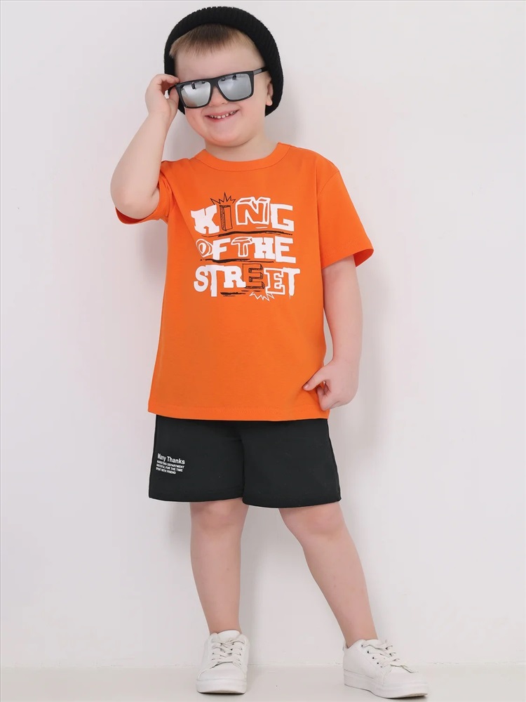 Футболка для мальчика выполнена из кулира – легкого хлопкового плотна. Изделие прямого силуэта и свободного кроя, с короткими рукавами со спущенной линией плеча, вырез горловины обработан эластичной бейкой из полотна компаньона. Футболка украшена ярким стильным принтом. Уход: только машинная стирка (руками не стирать!) при температуре 40 градусов, без предварительного замачивания. Изделия с печатью и декором перед стиркой необходимо вывернуть на изнаночную сторону.