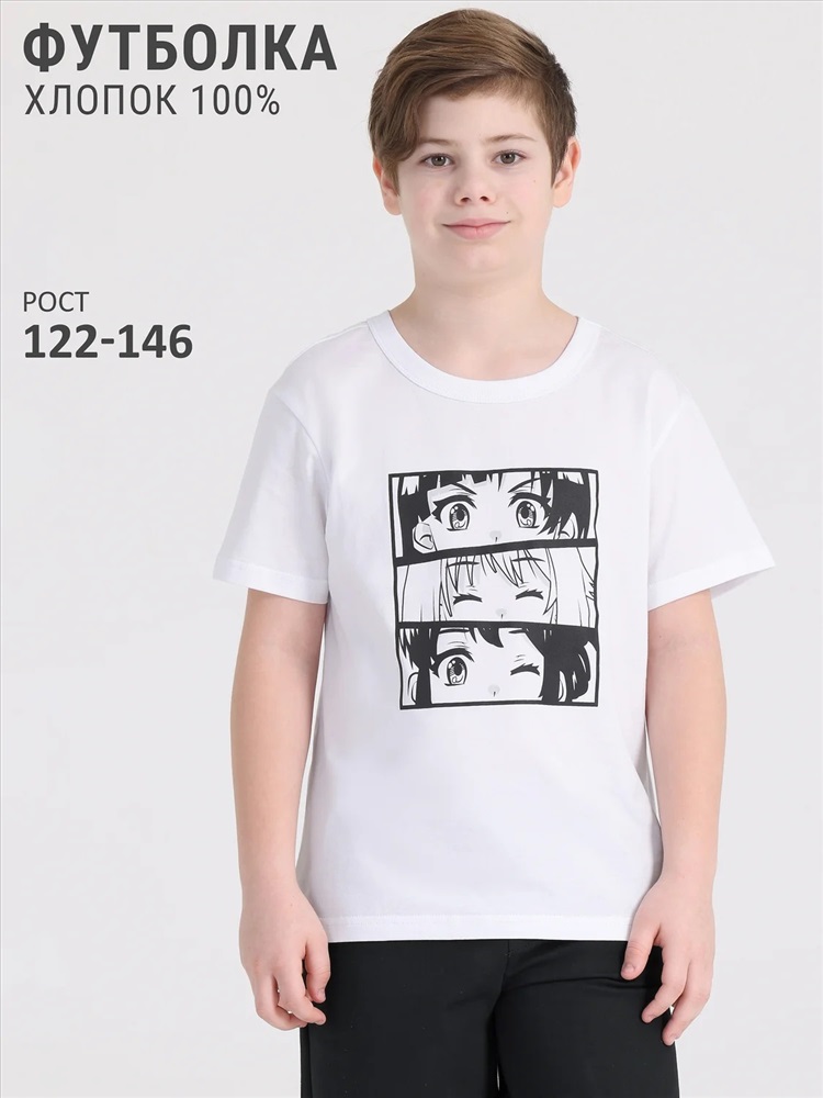 Футболка для мальчика выполнена из кулира – легкого хлопкового плотна. Изделие прямого силуэта и свободного кроя, с короткими рукавами со спущенной линией плеча, вырез горловины обработан эластичной бейкой из полотна компаньона. Футболка украшена стильным принтом. Уход: только машинная стирка (руками не стирать!) при температуре 40 градусов, без предварительного замачивания. Изделия с печатью и декором перед стиркой необходимо вывернуть на изнаночную сторону.