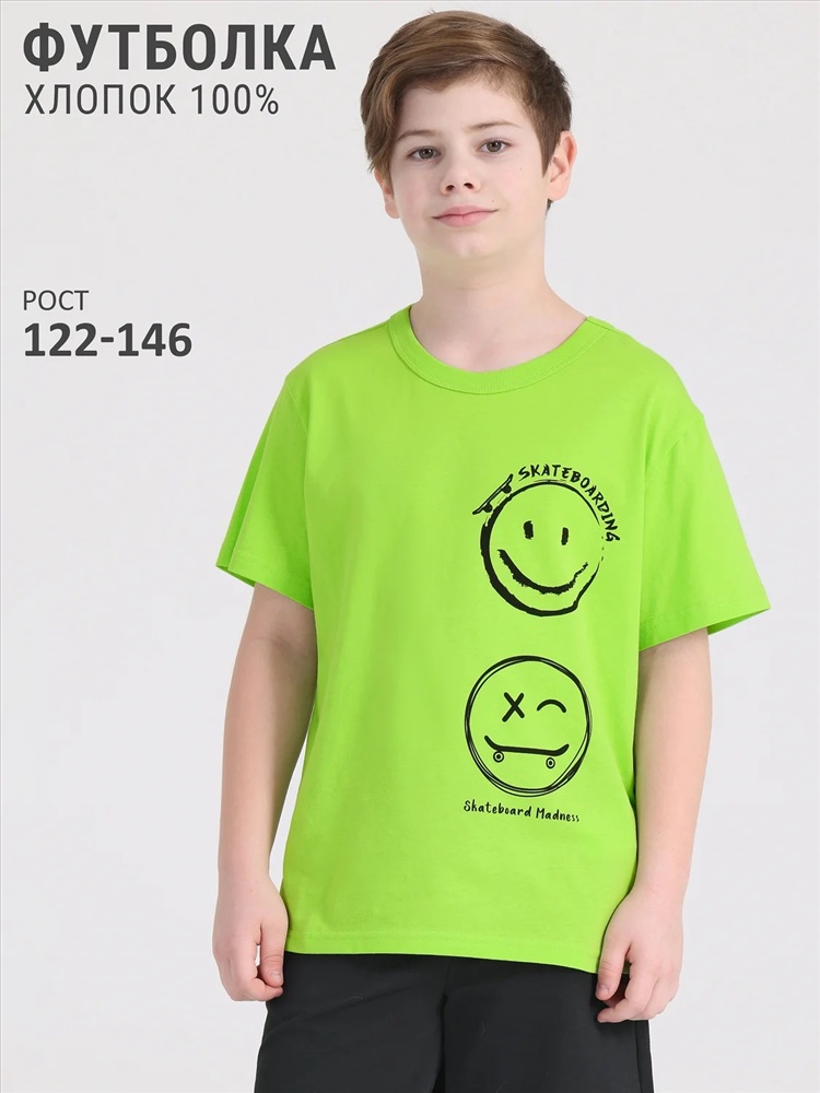 Производитель: Апрель; Российский размер: 122; Рост: 122; Возраст: 5-7; Обхват груди: 62; Артикул поставщика: 1ПДФК4332001; Ткань: кулир; Состав: хлопок 100%; Год: 2024; Страна: Россия Футболка для мальчика выполнена из кулира – легкого хлопкового плотна. Изделие прямого силуэта и свободного кроя, с короткими рукавами со спущенной линией плеча, вырез горловины обработан эластичной бейкой из полотна компаньона. Футболка украшена стильным принтом. Уход: только машинная стирка (руками не стирать!) при температуре 40 градусов, без предварительного замачивания. Изделия с печатью и декором перед стиркой необходимо вывернуть на изнаночную сторону.