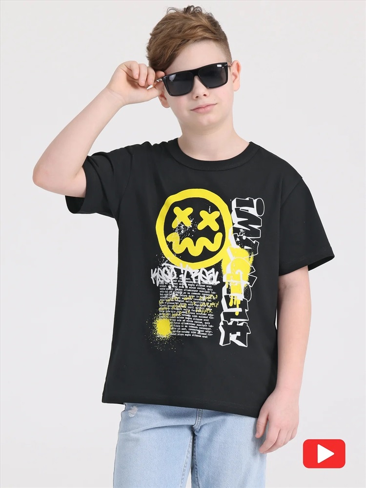 Футболка для мальчика выполнена из кулира – легкого хлопкового плотна. Изделие прямого силуэта и свободного кроя, с короткими рукавами со спущенной линией плеча, вырез горловины обработан эластичной бейкой из полотна компаньона. Футболка украшена стильным принтом. Уход: только машинная стирка (руками не стирать!) при температуре 40 градусов, без предварительного замачивания. Изделия с печатью и декором перед стиркой необходимо вывернуть на изнаночную сторону.