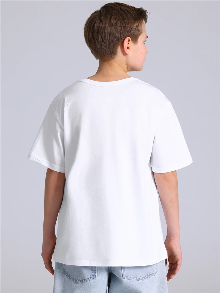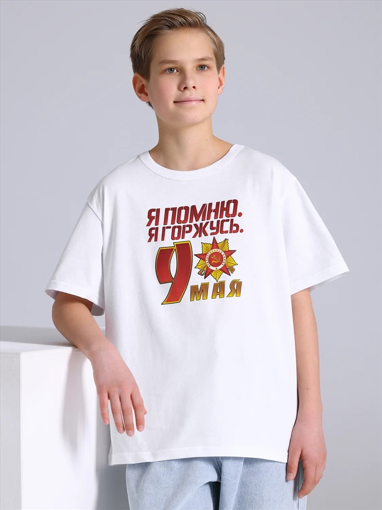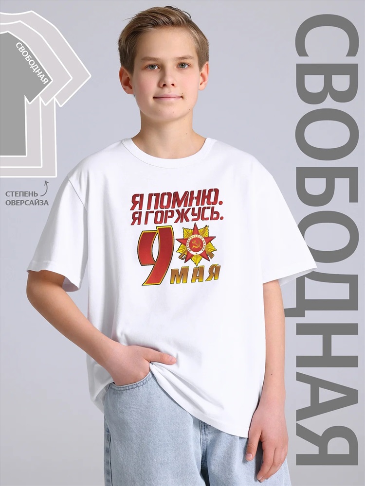 Футболка для мальчика выполнена из кулира – легкого хлопкового полотна. Изделие прямого силуэта и свободного кроя, с короткими рукавами со спущенной линией плеча, вырез горловины обработан эластичной бейкой из полотна компаньона. Футболка украшена печатью. Уход: только машинная стирка (руками не стирать!) при температуре 40 градусов, без предварительного замачивания. Изделия с печатью и декором перед стиркой необходимо вывернуть на изнаночную сторону.