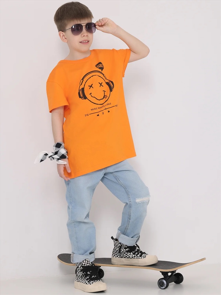 Оверсайз футболка для мальчика выполнена из кулира - легкого хлопкового полотна. Изделие прямого покроя с короткими рукавами и округлым вырезом горловины, украшено принтом. Уход: только машинная стирка (руками не стирать!) при температуре 40 градусов, без предварительного замачивания. Изделия с печатью или декором перед стиркой необходимо вывернуть на изнаночную сторону.