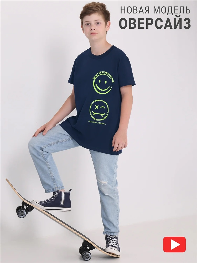 Оверсайз футболка для мальчика выполнена из кулира - легкого хлопкового полотна. Изделие прямого покроя с короткими рукавами и округлым вырезом горловины, украшено принтом. Уход: только машинная стирка (руками не стирать!) при температуре 40 градусов, без предварительного замачивания. Изделия с печатью или декором перед стиркой необходимо вывернуть на изнаночную сторону.
