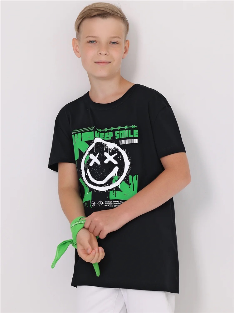 Производитель: Апрель; Российский размер: 134; Рост: 134; Возраст: 9-10; Обхват груди: 68; Артикул поставщика: 1ПДФК4518001; Ткань: кулир; Состав: хлопок 100%; Год: 2024; Страна: Россия Оверсайз футболка для мальчика выполнена из кулира - легкого хлопкового полотна. Изделие прямого покроя с короткими рукавами и округлым вырезом горловины, украшено принтом. Уход: только машинная стирка (руками не стирать!) при температуре 40 градусов, без предварительного замачивания. Изделия с печатью или декором перед стиркой необходимо вывернуть на изнаночную сторону.