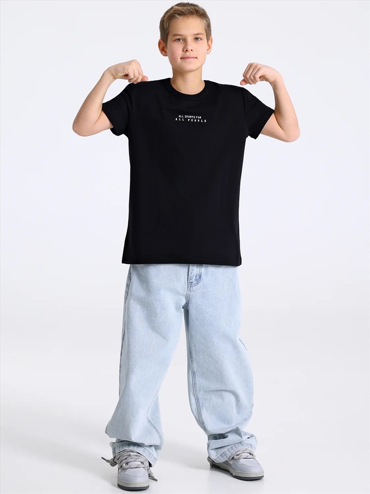 Оверсайз футболка для мальчика выполнена из кулира - легкого хлопкового полотна. Изделие свободного силуэта с короткими рукавами и круглым вырезом горловины. Полочка украшена печатью. Уход: только машинная стирка (руками не стирать!) при температуре 40 градусов, без предварительного замачивания. Изделия с печатью или декором перед стиркой необходимо вывернуть на изнаночную сторону.