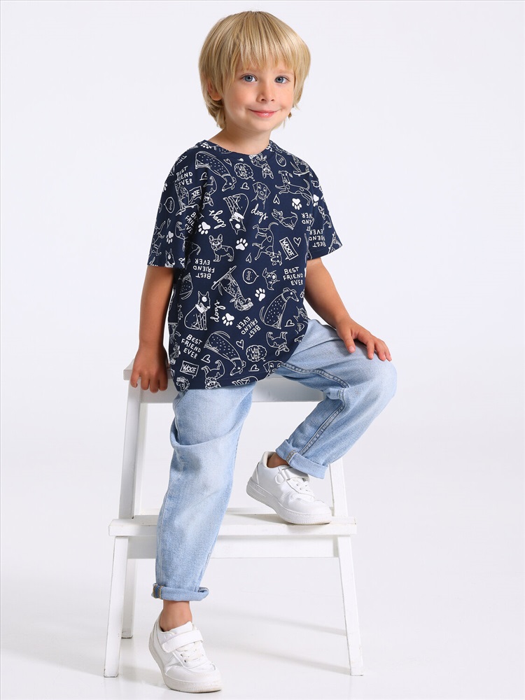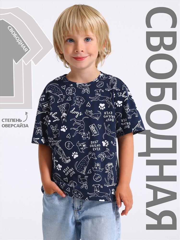 Производитель: Апрель; Артикул поставщика: 1ПДФК4590001н; Ткань: кулир; Состав: хлопок 100%; Год: 2025; Страна: Россия; Российский размер: 104; Рост: 104; Возраст: 2-4; Обхват груди: 54 Футболка для мальчика выполнена из кулира - тонкого хлопкового набивного полотна. Изделие свободного покроя с круглым вырезом горловины и короткими рукавами со спущенной линией плеча. Уход: только машинная стирка (руками не стирать!) при температуре 40 градусов, без предварительного замачивания.