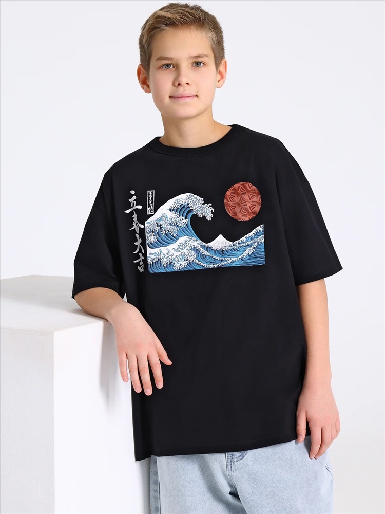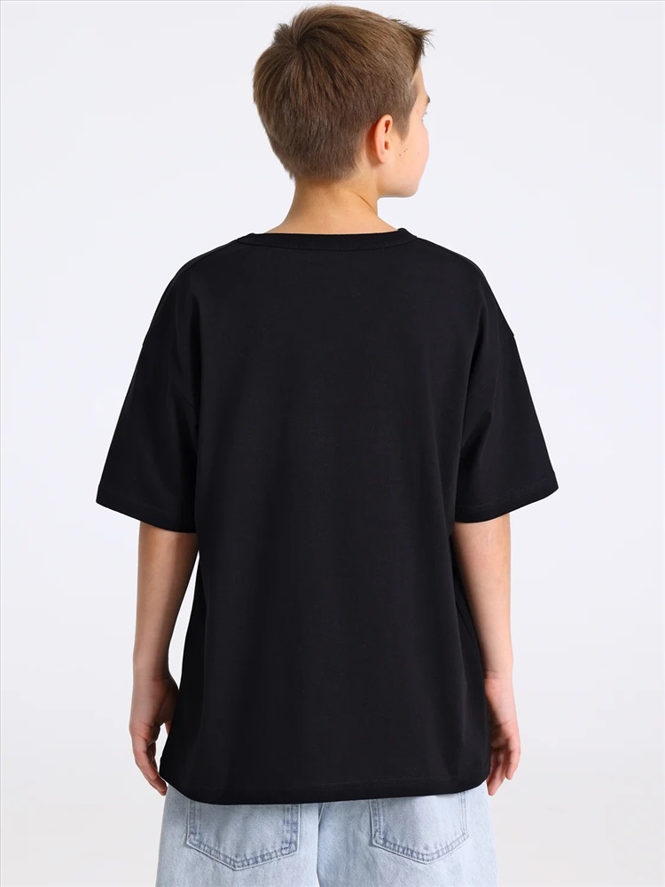 Оверсайз футболка для мальчика выполнена из кулира – легкого хлопокового полотна. Изделие прямого покроя, с короткими рукавами, со спущенной линией плеча. Круглый вырез горловины обработан эластичной бейкой из полотна компаньона. На полочке печать. Уход: только машинная стирка (руками не стирать!) при температуре 40 градусов, без предварительного замачивания. Изделия с печатью перед стиркой необходимо вывернуть на изнаночную сторону.