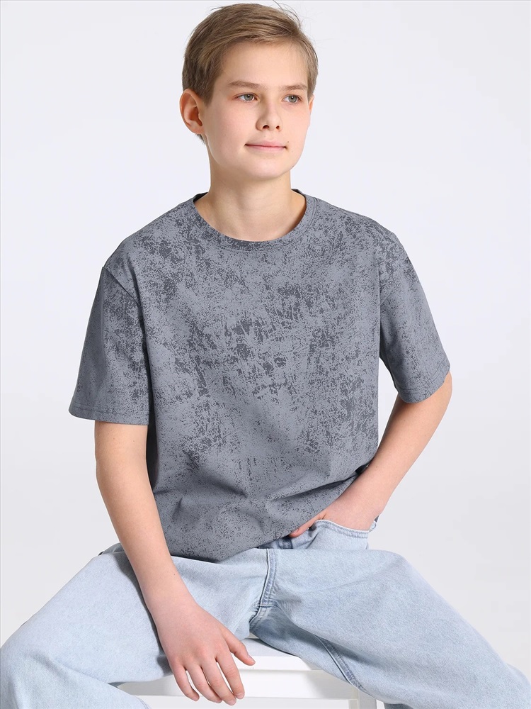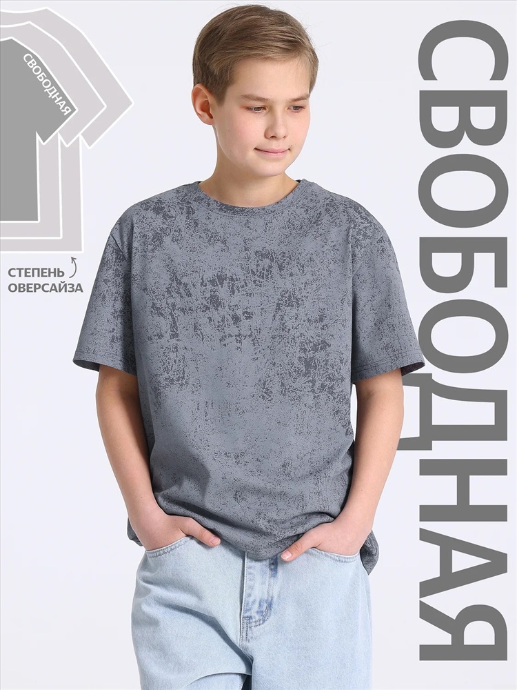 Футболка для мальчика выполнена из кулира - тонкого хлопкового набивного полотна. Изделие свободного покроя с круглым вырезом горловины и короткими рукавами со спущенной линией плеча. Уход: только машинная стирка (руками не стирать!) при температуре 40 градусов, без предварительного замачивания.