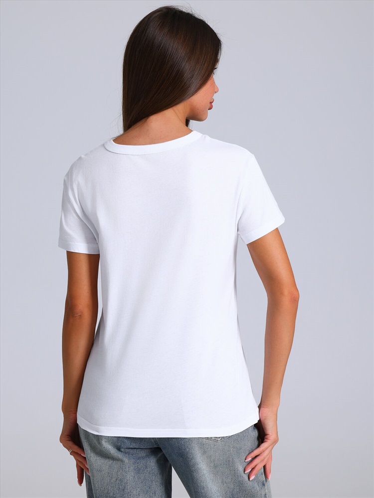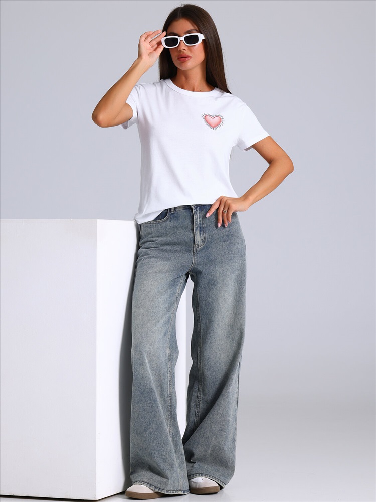 Женская футболка выполнена из кулира - легкого хлопкового полотна. Изделие свободного покроя с короткими рукавами и круглым вырезом горловины, украшено аппликацией. Уход: только машинная стирка (руками не стирать!) при температуре 40 градусов, без предварительного замачивания. Изделия с печатью перед стиркой необходимо вывернуть на изнаночную сторону.