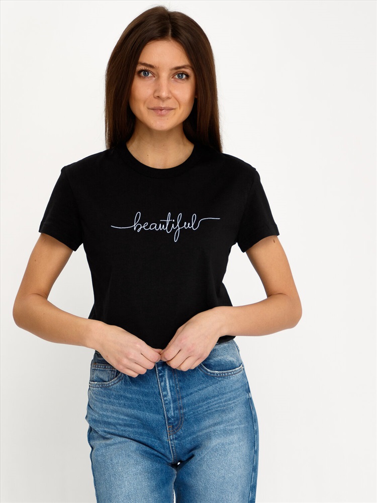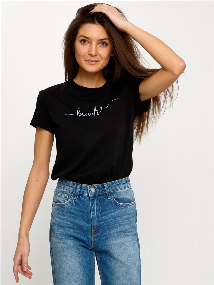 Производитель: Апрель; Российский размер: 42; Обхват груди: 84; Артикул поставщика: 1ЖДФК2692001; Ткань: кулир; Состав: хлопок 100%; Год: 2022; Страна: Россия; Рост: 164 Футболка выполнена из кулира - легкого хлопкового полотна. Изделие свободного покроя с короткими рукавами и округлым вырезом горловины, украшено оригинальной вышивкой. Уход: только машинная стирка (руками не стирать!) при температуре 40 градусов, без предварительного замачивания. Изделия с печатью и декором перед стиркой необходимо вывернуть на изнаночную сторону.
