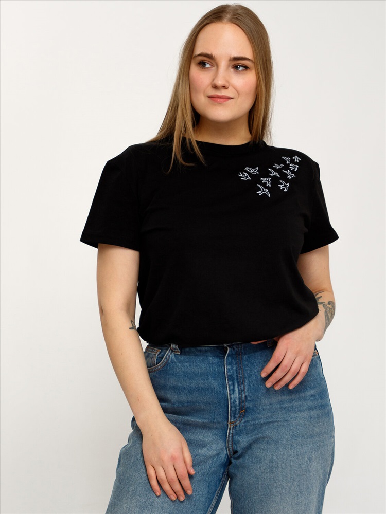 Футболка выполнена из кулира - легкого хлопкового полотна. Изделие свободного покроя с короткими рукавами и округлым вырезом горловины, украшено стильным принтом. Отличный вариант на каждый день! Уход: только машинная стирка (руками не стирать!) при температуре 40 градусов, без предварительного замачивания. Изделия с печатью и декором перед стиркой необходимо вывернуть на изнаночную сторону.