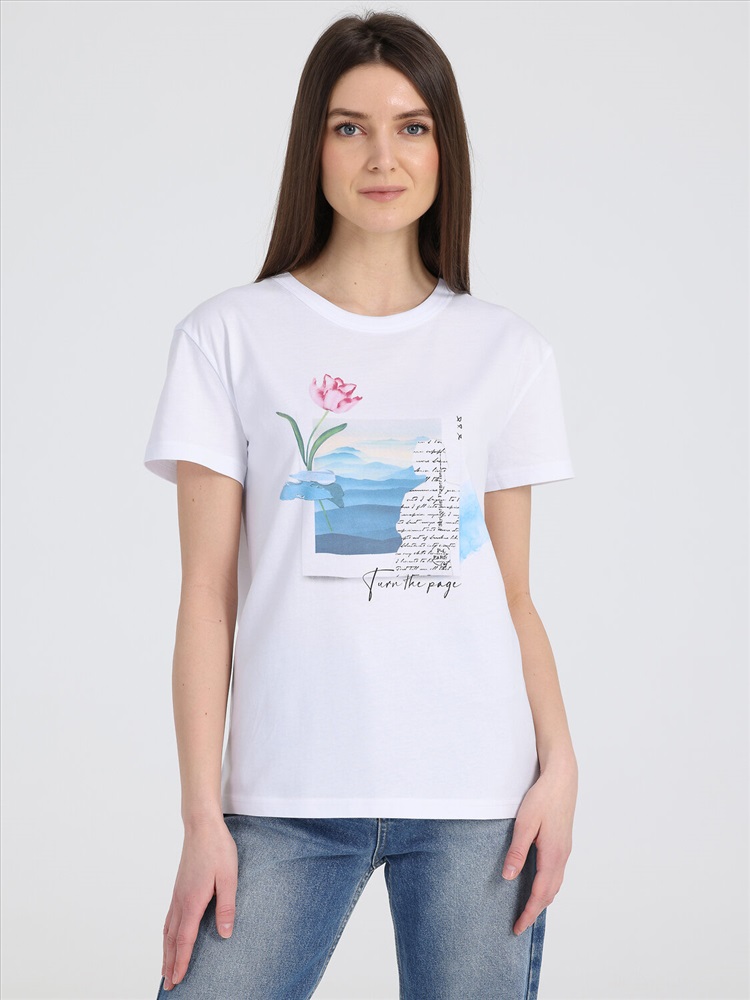 Футболка выполнена из легкого хлопкового полотна. Изделие свободного покроя с короткими рукавами и округлым вырезом горловины, украшено дизайнерским принтом. Уход: только машинная стирка (руками не стирать!) при температуре 40 градусов, без предварительного замачивания. Изделия с печатью перед стиркой необходимо вывернуть на изнаночную сторону.