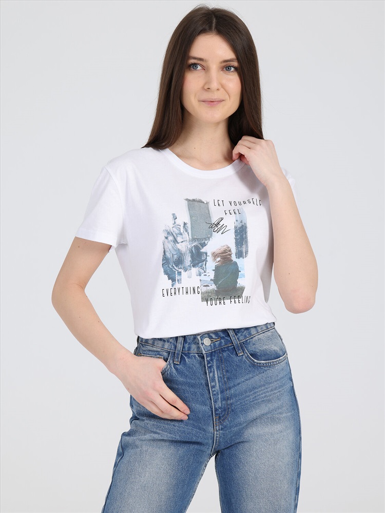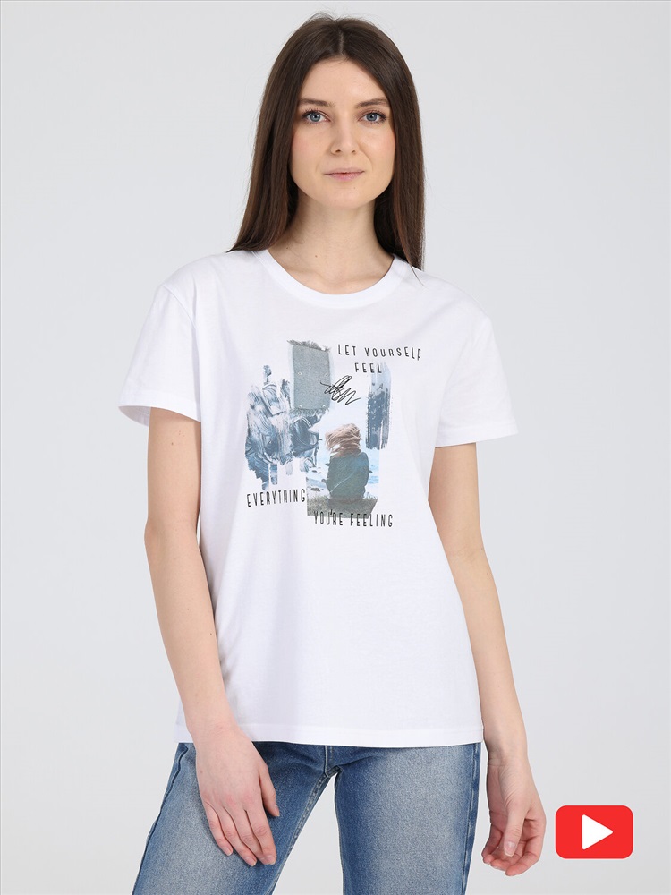 Футболка выполнена из легкого хлопкового полотна. Изделие свободного покроя с короткими рукавами и округлым вырезом горловины, украшено дизайнерским принтом. Уход: только машинная стирка (руками не стирать!) при температуре 40 градусов, без предварительного замачивания. Изделия с печатью перед стиркой необходимо вывернуть на изнаночную сторону.