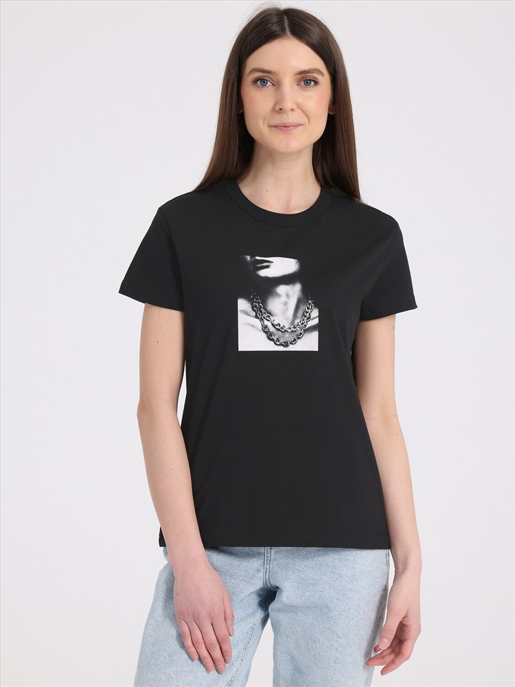 Футболка выполнена из кулира - легкого хлопкового полотна. Изделие свободного покроя с короткими рукавами и округлым вырезом горловины, украшено дизайнерским принтом. Уход: только машинная стирка (руками не стирать!) при температуре 40 градусов, без предварительного замачивания. Изделия с печатью перед стиркой необходимо вывернуть на изнаночную сторону.