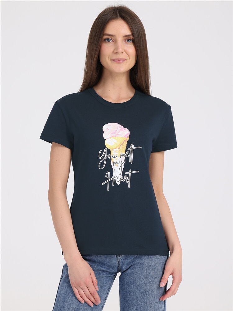 Футболка выполнена из легкого хлопкового полотна. Изделие свободного покроя с короткими рукавами и округлым вырезом горловины, украшено дизайнерским принтом. Уход: только машинная стирка (руками не стирать!) при температуре 40 градусов, без предварительного замачивания. Изделия с печатью перед стиркой необходимо вывернуть на изнаночную сторону.