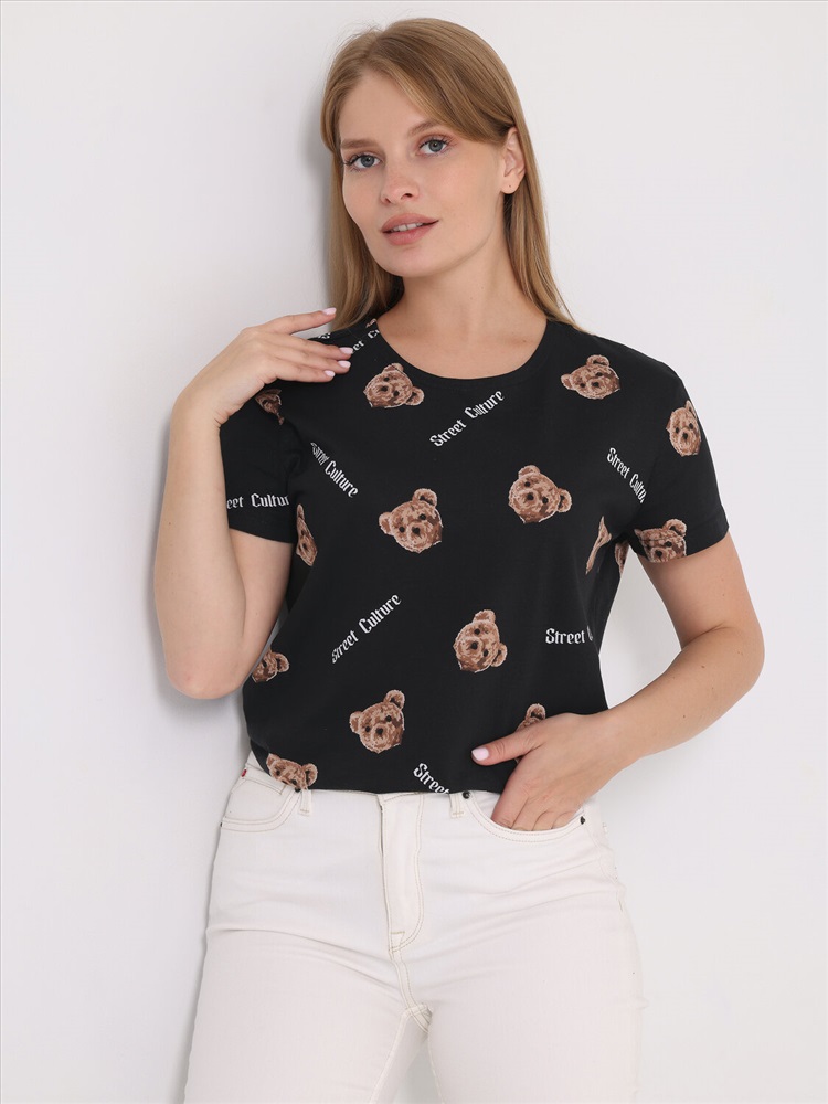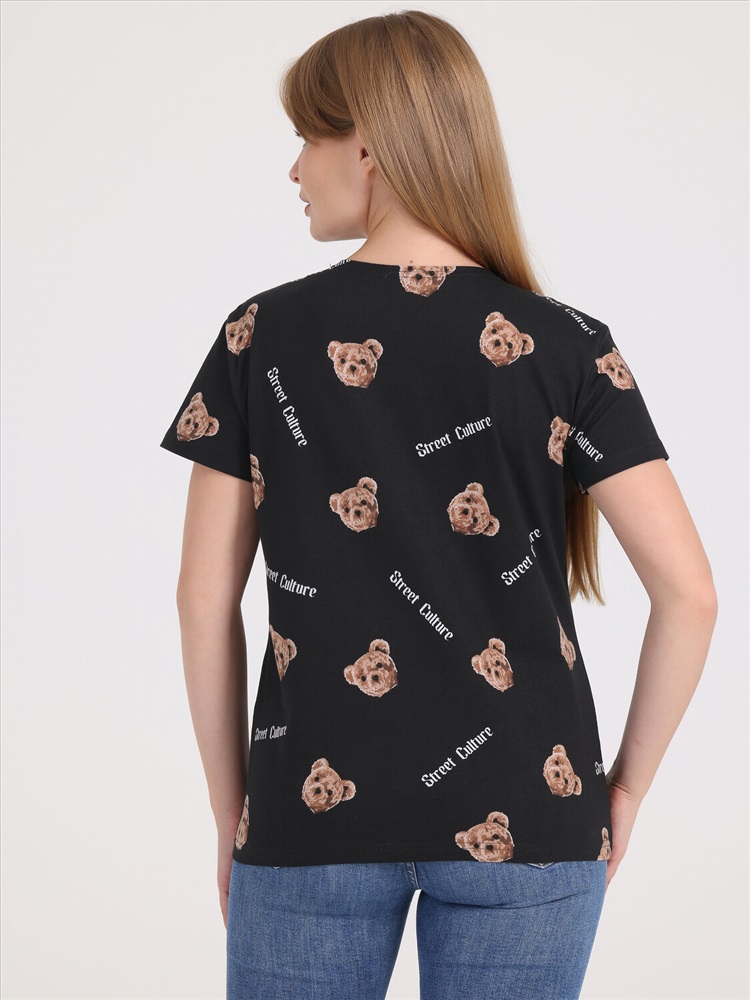 Футболка выполнена из кулира - легкого хлопкового полотна. Изделие свободного покроя с короткими рукавами и округлым вырезом горловины. Уход: только машинная стирка (руками не стирать!) при температуре 40 градусов, без предварительного замачивания.