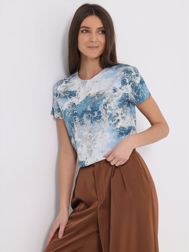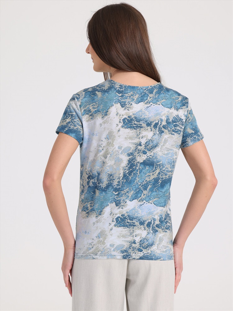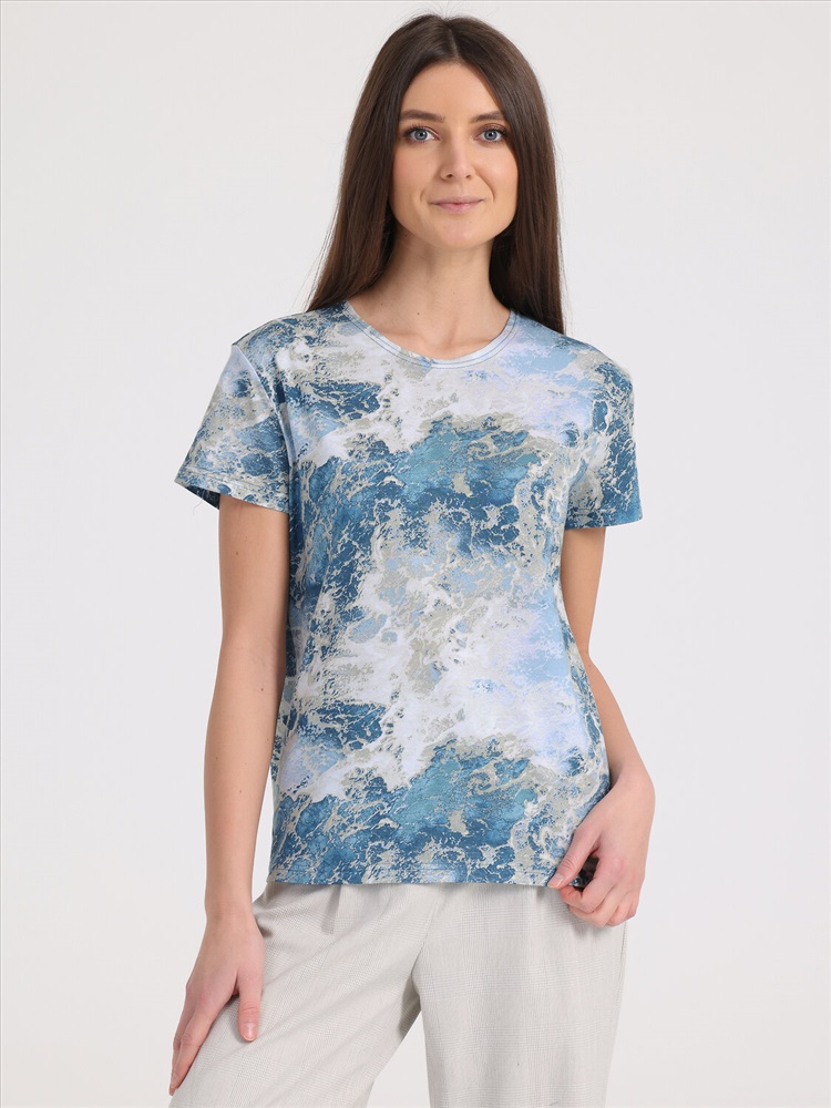 Производитель: Апрель; Российский размер: 42; Обхват груди: 84; Артикул поставщика: 1ЖДФК3173001н; Ткань: кулир; Состав: хлопок 100%; Год: 2023; Страна: Россия; Рост: 164 Футболка выполнена из кулира - легкого хлопкового полотна. Изделие свободного покроя с короткими рукавами и округлым вырезом горловины. Уход: только машинная стирка (руками не стирать!) при температуре 40 градусов, без предварительного замачивания.