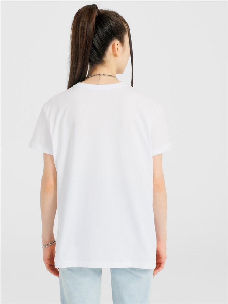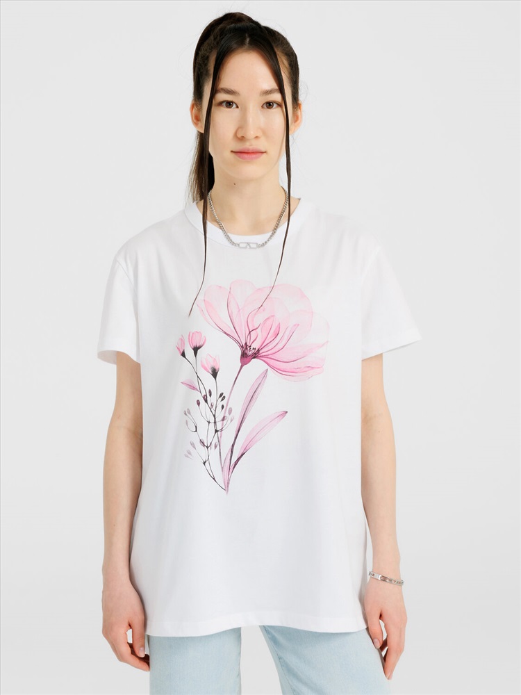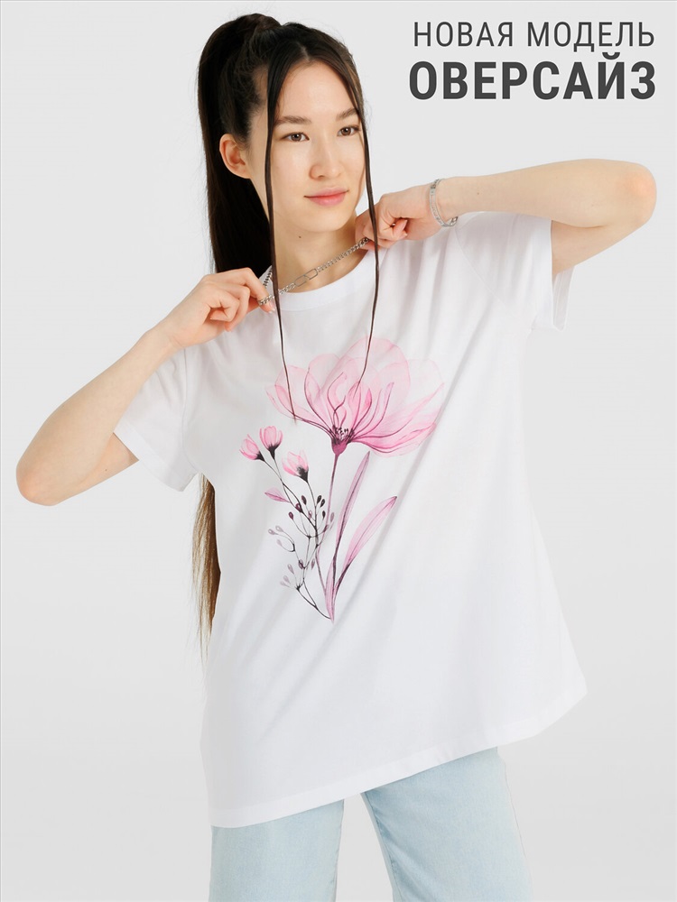 Оверсайз футболка выполнена из кулира - легкого хлопкового полотна. Изделие прямого покроя с короткими рукавами и округлым вырезом горловины, украшено дизайнерским принтом. Уход: только машинная стирка (руками не стирать!) при температуре 40 градусов, без предварительного замачивания. Изделия с печатью перед стиркой необходимо вывернуть на изнаночную сторону.