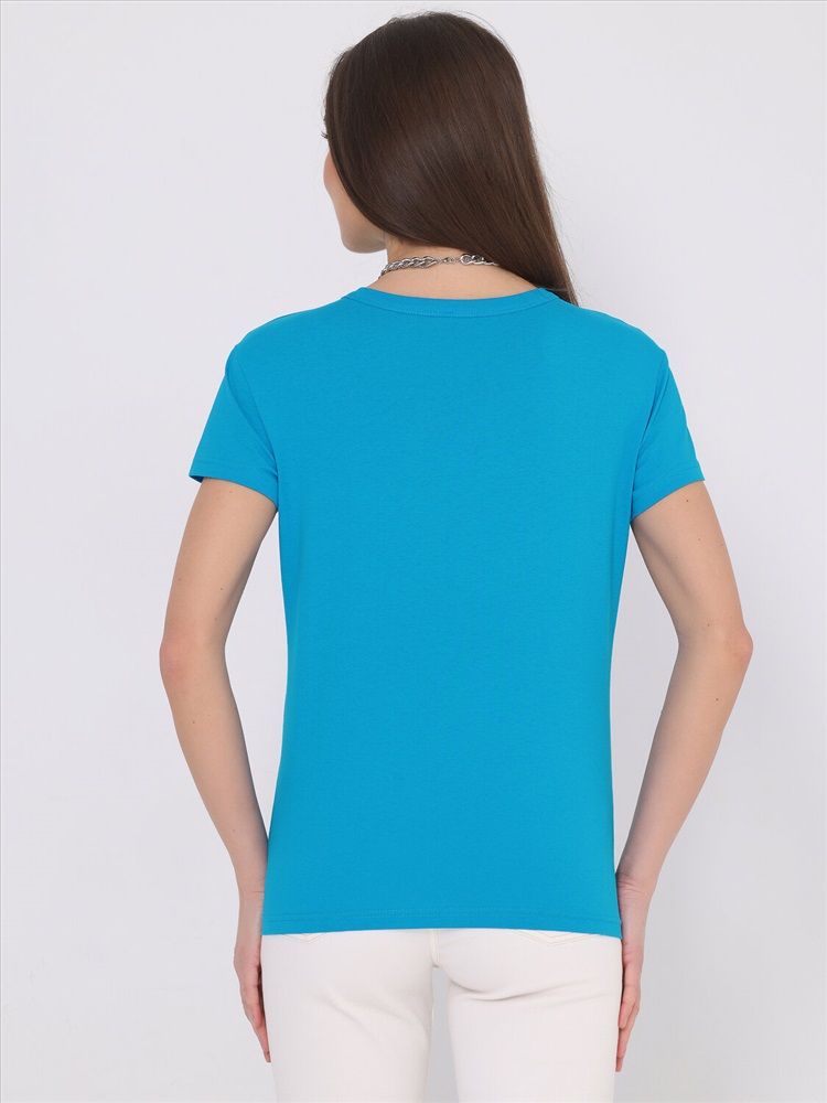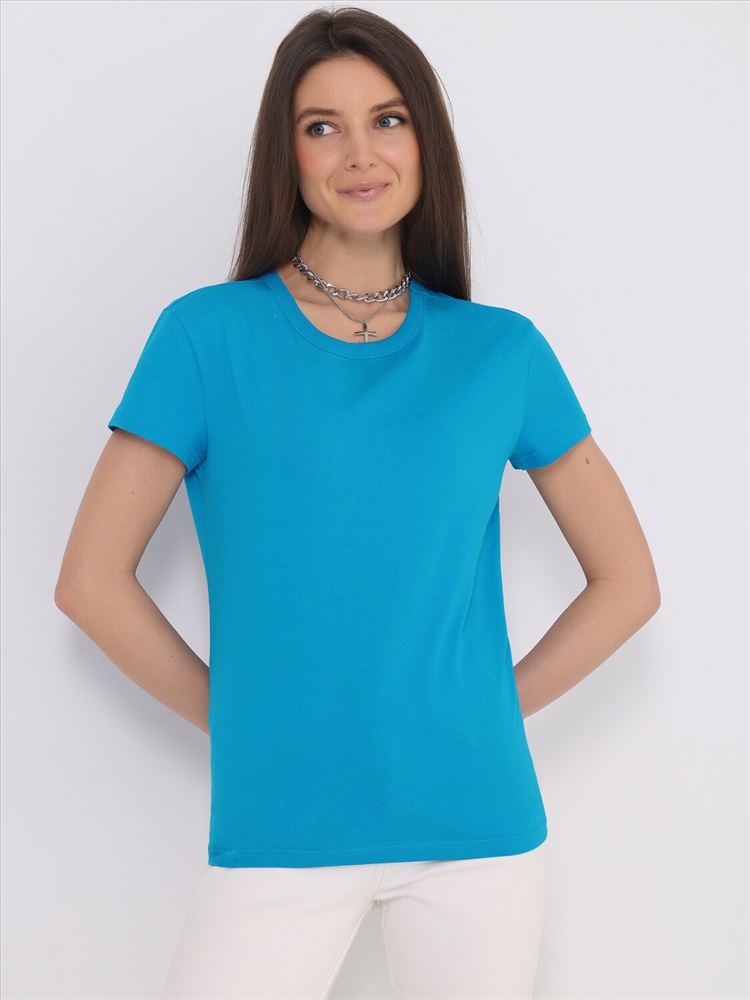 Футболка выполнена из кулира - легкого хлопкового полотна. Изделие свободного покроя с короткими рукавами и округлым вырезом горловины. Уход: только машинная стирка (руками не стирать!) при температуре 40 градусов, без предварительного замачивания.