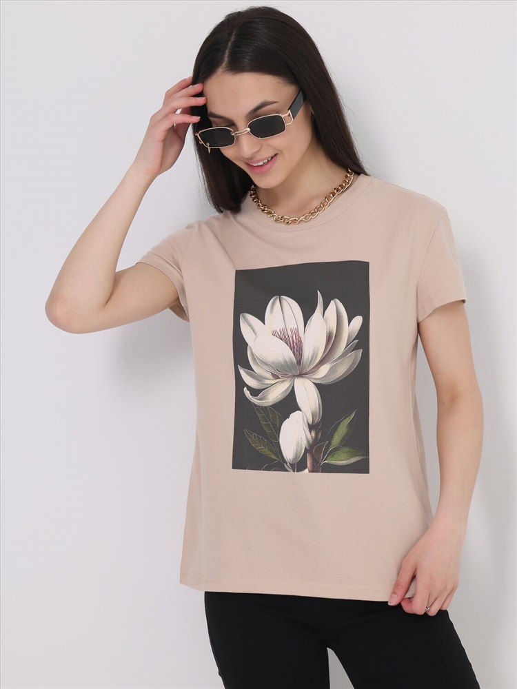 Футболка выполнена из кулира - легкого хлопкового полотна. Изделие свободного покроя с короткими рукавами и округлым вырезом горловины, украшено дизайнерским принтом. Уход: только машинная стирка (руками не стирать!) при температуре 40 градусов, без предварительного замачивания. Изделия с печатью перед стиркой необходимо вывернуть на изнаночную сторону.