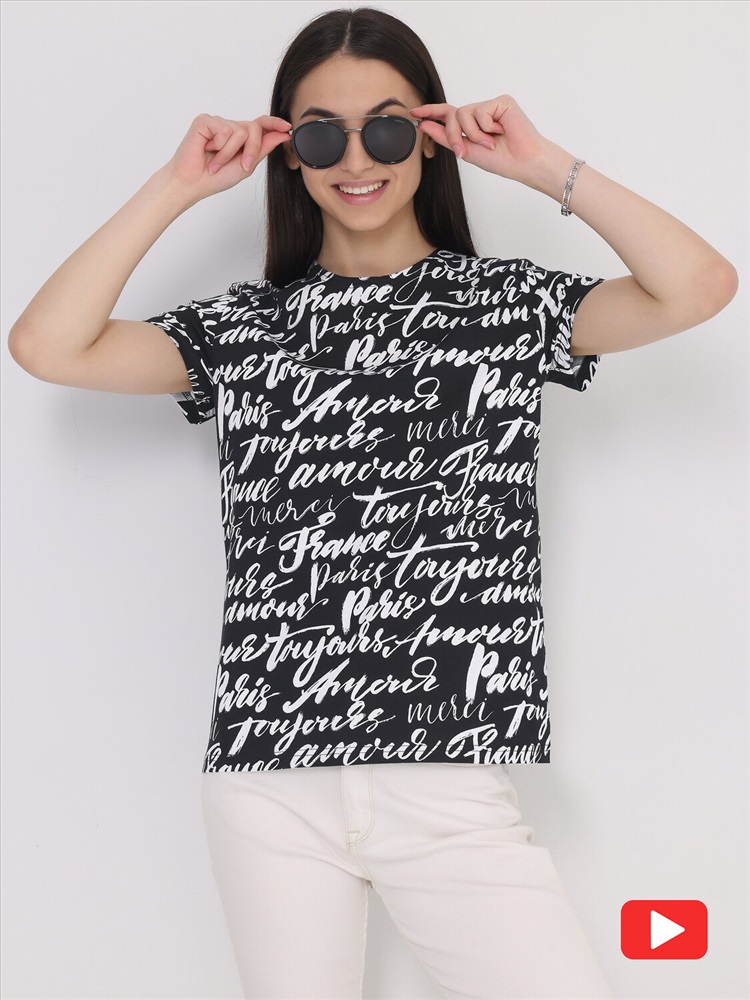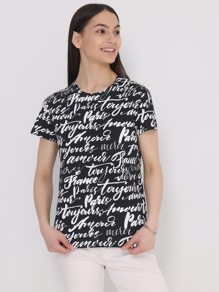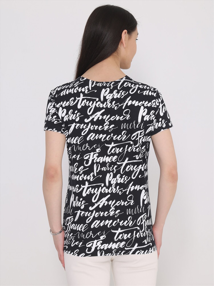 Футболка выполнена из кулира - легкого хлопкового полотна. Изделие свободного покроя с короткими рукавами и округлым вырезом горловины. Уход: только машинная стирка (руками не стирать!) при температуре 40 градусов, без предварительного замачивания.