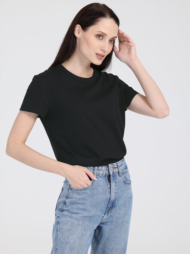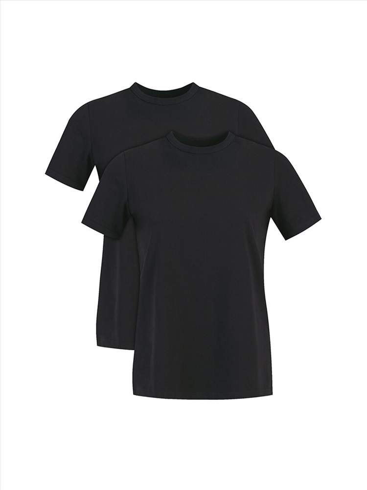 Комплект из двух женских футболок из кулира - легкого хлопкового полотна. Изделие свободного покроя с короткими рукавами и округлым вырезом горловины. Уход: только машинная стирка (руками не стирать!) при температуре 40 градусов, без предварительного замачивания.