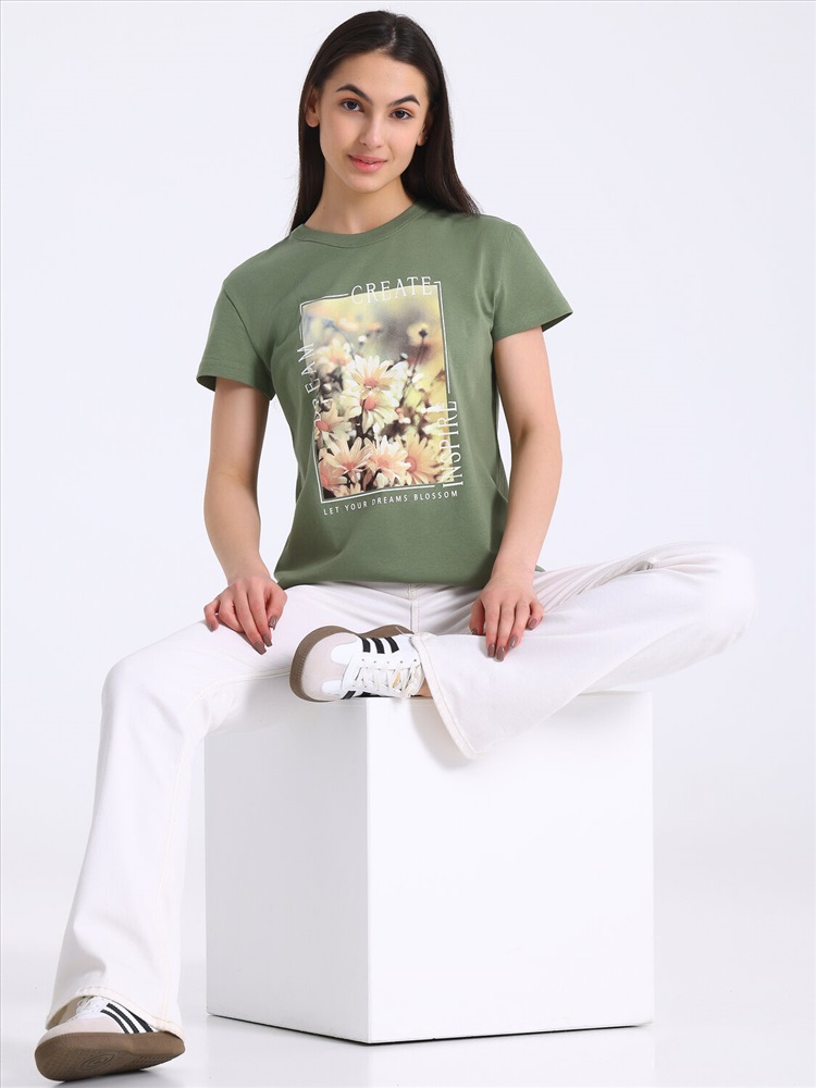 Футболка выполнена из кулира - легкого хлопкового полотна. Изделие свободного покроя с короткими рукавами и округлым вырезом горловины, украшено печатью. Уход: только машинная стирка (руками не стирать!) при температуре 40 градусов, без предварительного замачивания. Изделия с печатью перед стиркой необходимо вывернуть на изнаночную сторону.