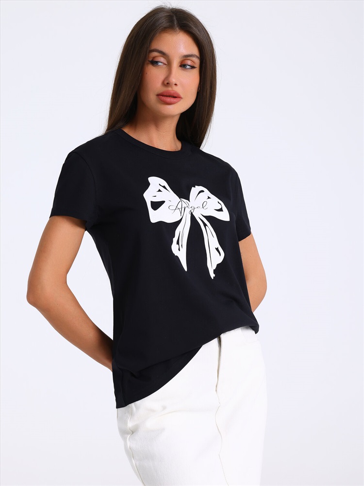 Футболка выполнена из кулира - легкого хлопкового полотна. Изделие свободного покроя с короткими рукавами и округлым вырезом горловины, украшено печатью. Уход: только машинная стирка (руками не стирать!) при температуре 40 градусов, без предварительного замачивания. Изделия с печатью перед стиркой необходимо вывернуть на изнаночную сторону.