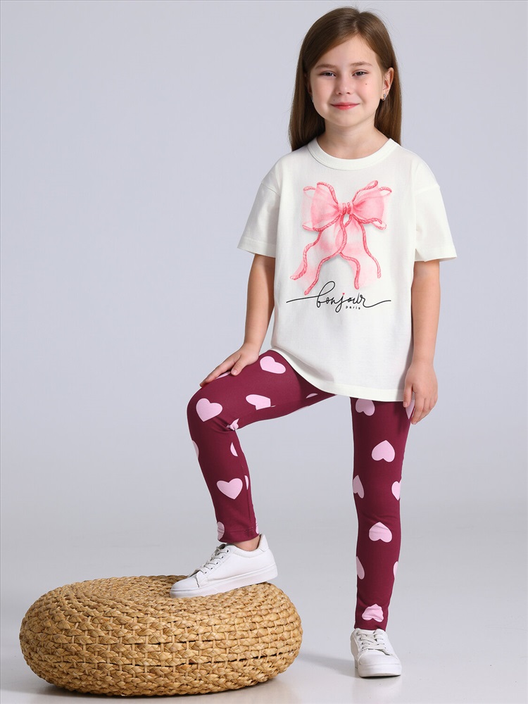 Цвет: сливки1+светло-розовые сердца на бордовом / Прозрачный бант