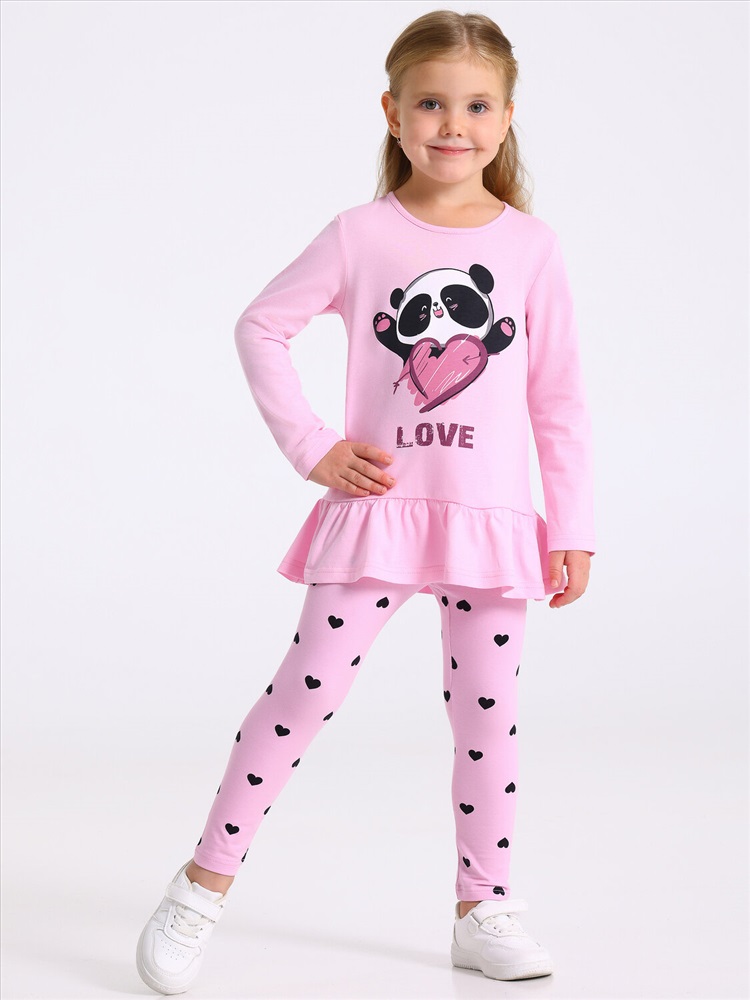 светло-розовый+черные сердечки на светло-розовом / Влюбленная панда