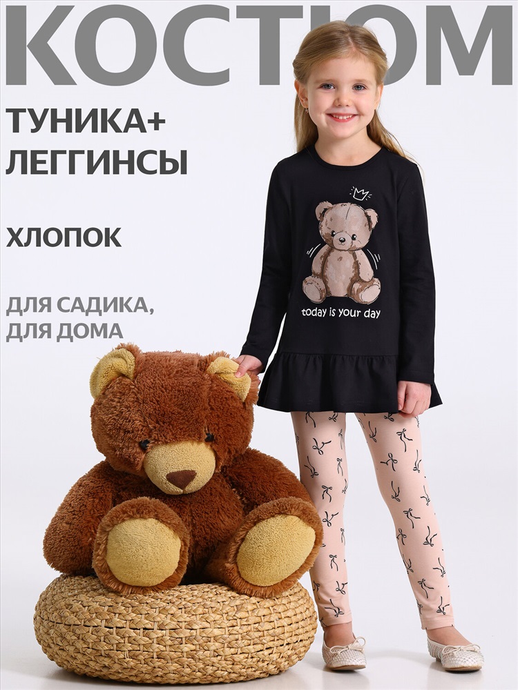 черный+черные бантики на бежевом / Медвежонок