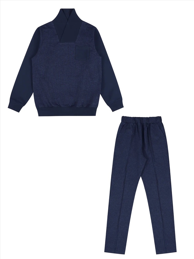 Стильный комплект из кардигана и брюк выполнен из футера - плотного хлопкового полотна с лайкрой. Трикотажный кардиган с шалевым воротником и манжетами украшен накладным кармашком. Брюки средней посадки на эластичном поясе имеют втачные карманы и отстрочки-стрелки. Уход: только машинная стирка (руками не стирать!) при температуре 40 градусов, без предварительного замачивания.