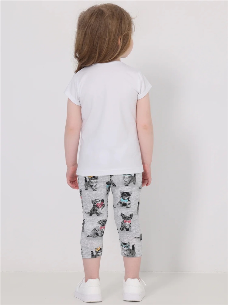 Комплект для девочки из двух пар бриджей выполнен из кулира - легкого хлопкового полотна с лайкрой. Бриджи свободно-облегающего кроя, на эластичном поясе. Отличный вариант для летнего дня! Уход: только машинная стирка (руками не стирать!) при температуре 40 градусов, без предварительного замачивания.