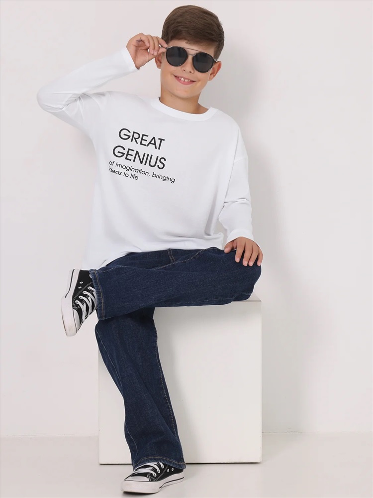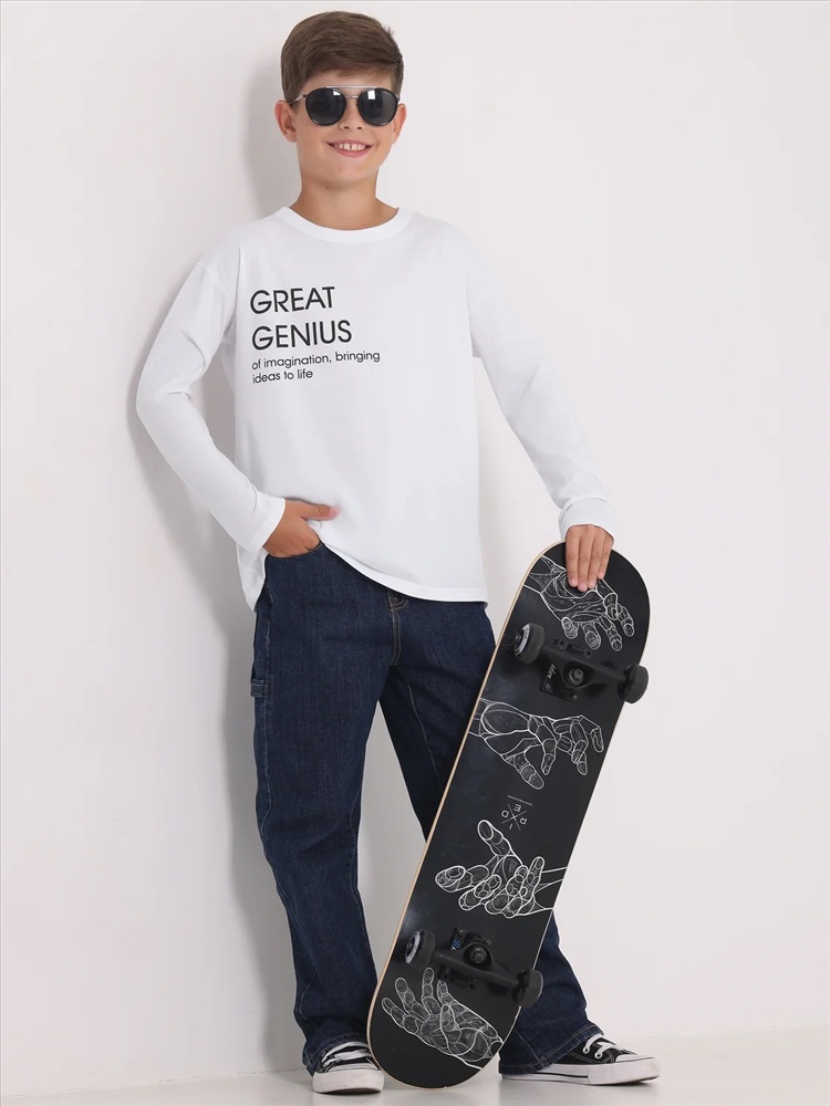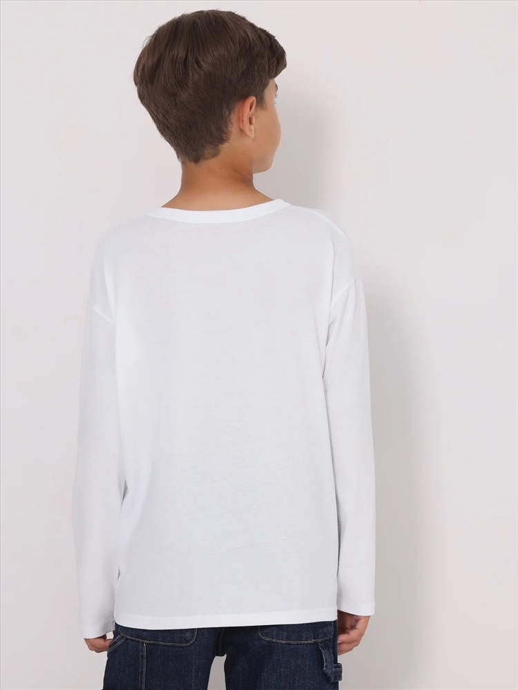 Лонгслив для мальчика выполнен из кулира – легкого хлопкового плотна. Изделие прямого силуэта и свободного кроя, с длинными рукавами со спущенной линией плеча, вырез горловины обработан эластичной бейкой из полотна компаньона. Украшен стильным принтом. Уход: только машинная стирка (руками не стирать!) при температуре 40 градусов, без предварительного замачивания. Изделия с печатью перед стиркой необходимо вывернуть на изнаночную сторону.