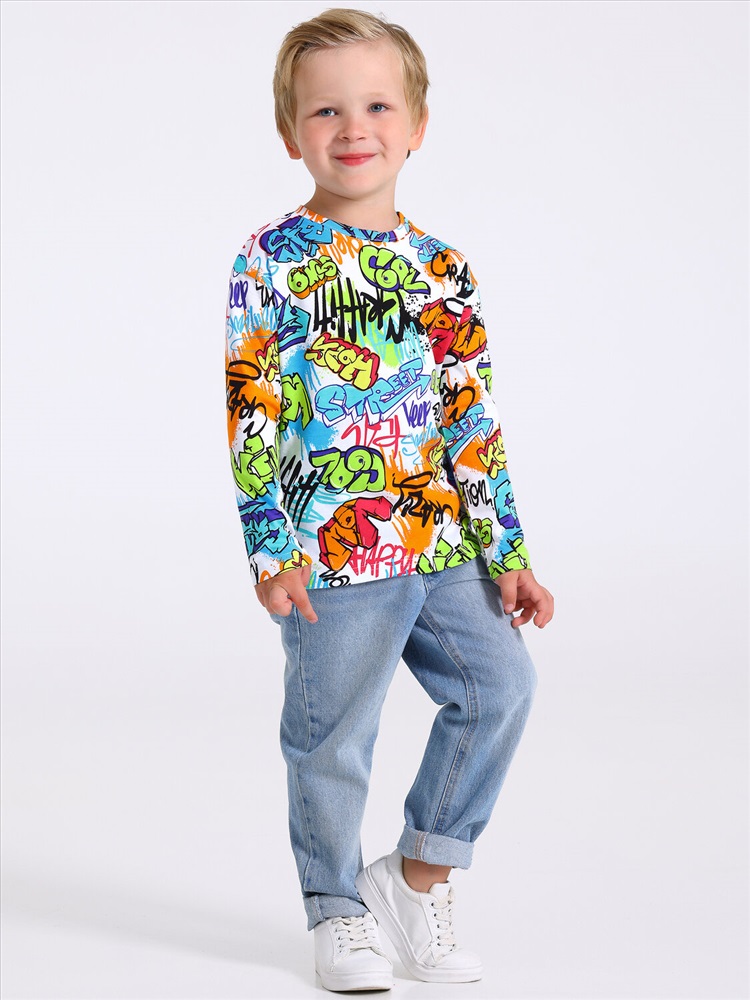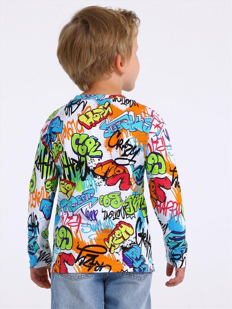 Лонгслив для мальчика выполнен из кулира – легкого хлопкового набивного полотна. Изделие прямого силуэта с длинными рукавами со спущенной линией плеча. Уход: только машинная стирка (руками не стирать!) при температуре 40 градусов, без предварительного замачивания.