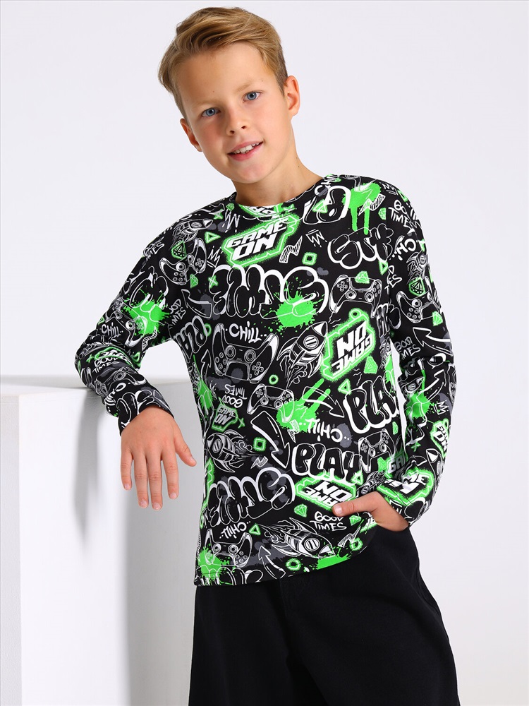 Лонгслив для мальчика выполнен из кулира – легкого хлопкового полотна. Изделие прямого силуэта с длинными рукавами со спущенной линией плеча. Отличный вариант на каждый день! Уход: только машинная стирка (руками не стирать!) при температуре 40 градусов, без предварительного замачивания.