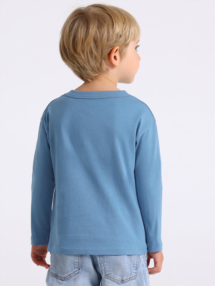 Лонгслив для мальчика выполнен из кулира – тонкого хлопкового полотна. Изделие прямого силуэта и свободного кроя, с длинными рукавами со спущенной линией плеча, вырез горловины обработан эластичной бейкой из полотна компаньона. Полочка украшена печатью. Уход: только машинная стирка (руками не стирать!) при температуре 40 градусов, без предварительного замачивания. Изделия с печатью перед стиркой необходимо вывернуть на изнаночную сторону.
