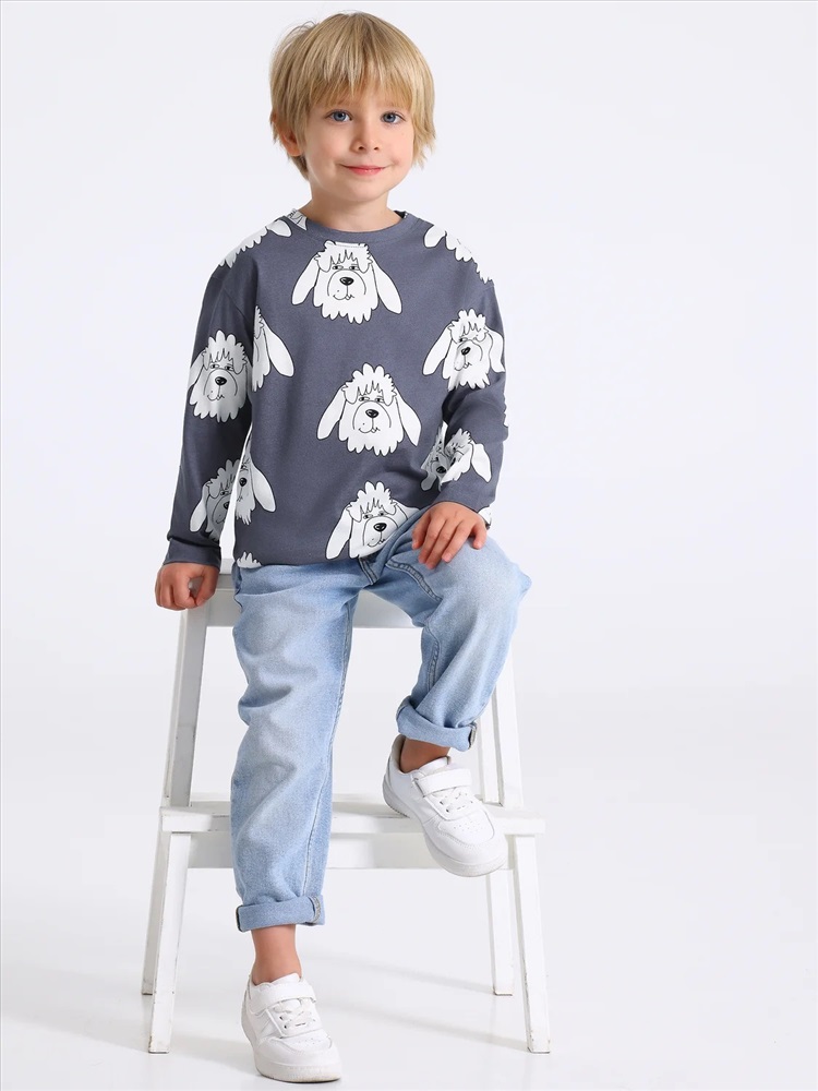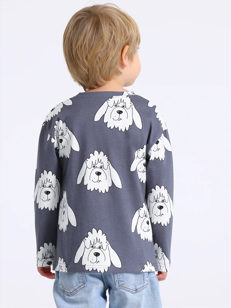 Лонгслив для мальчика выполнен из кулира – легкого хлопкового набивного полотна. Изделие прямого силуэта с длинными рукавами со спущенной линией плеча. Уход: только машинная стирка (руками не стирать!) при температуре 40 градусов, без предварительного замачивания.