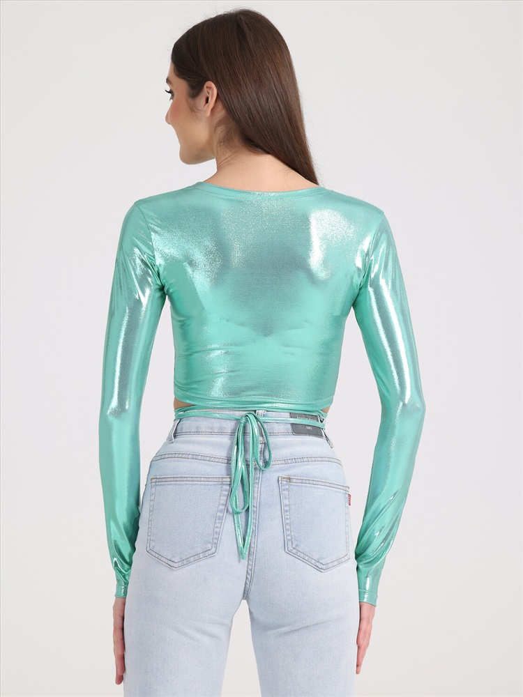 Производитель: Апрель; Артикул поставщика: 1ЖДЛД4463931н; Ткань: кулир; Состав: ПЭ 96%, лайкра 4%; Год: 2023; Страна: Россия; Российский размер: 50; Рост: 164; Обхват груди: 100 Стильный укороченный лонгслив выполнен из эластичного полотна с блестящим напылением. Изделие прилегающего силуэта с длинными рукавами и круглым вырезом горловины, линию талии эффектно подчеркивает декоративные завязки. Уход: ручная стирка при температуре до 30 градусов без предварительного замачивания.
