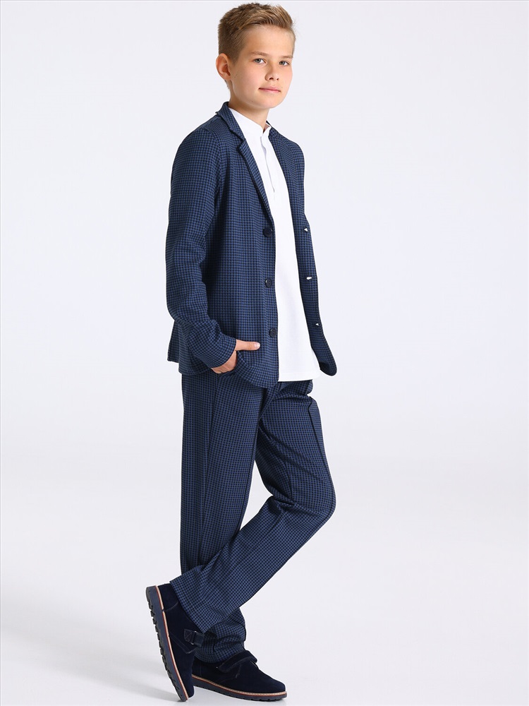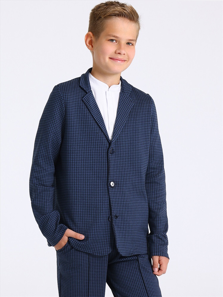 Пиджак для мальчика выполнен из жаккарда - плотного хлопкового полотна с рельефным рисунком, выполненным с применением жаккардового плетения.Изделие с длинными рукавами, с застежкой на пуговицы. Отличный вариант для школы! Уход: только машинная стирка (руками не стирать!) при температуре 40 градусов, без предварительного замачивания.