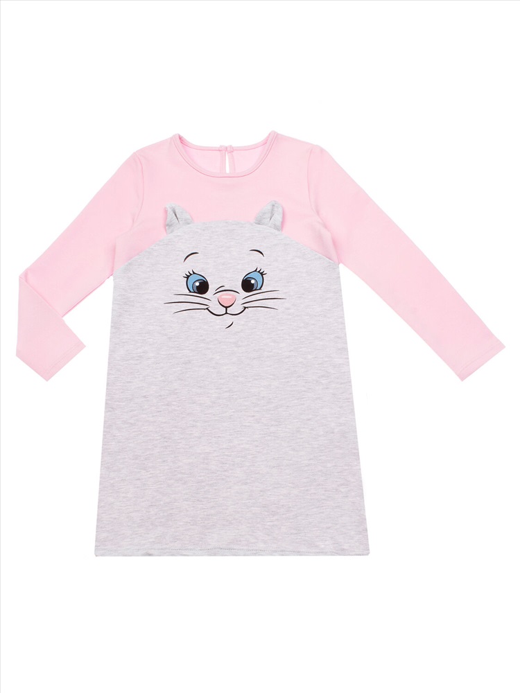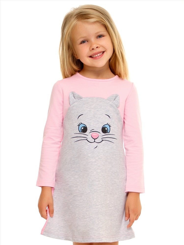 Платье для девочки выполнено из теплого хлопкового полотна с лайкрой. Изделие с длинными рукавами, на кокетке. Веселый принт и нашивные элементы имитируют мордочку зверушки. Отличный наряд для маленьких принцесс! Уход: только машинная стирка (руками не стирать!) при температуре 40 градусов, без предварительного замачивания. Изделия с печатью и декором перед стиркой необходимо вывернуть на изнаночную сторону.