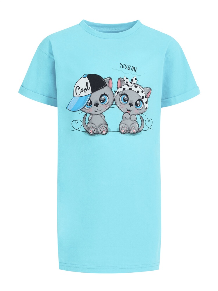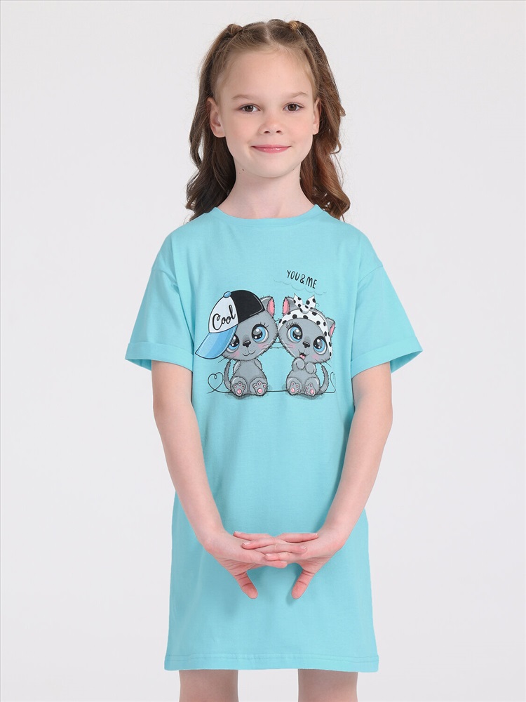 Платье Oversize из кулира - легкого хлопкового полотна. Изделие с короткими рукавами со спущенным плечом с отворотами, украшено ярким принтом. Отличный выбор для летнего жаркого дня! Уход: только машинная стирка (руками не стирать!) при температуре 40 градусов, без предварительного замачивания. Изделия с печатью и декором перед стиркой необходимо вывернуть на изнаночную сторону.