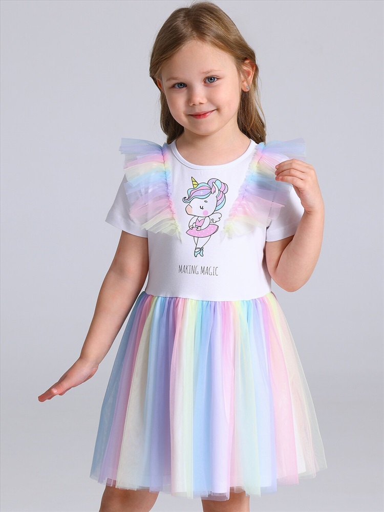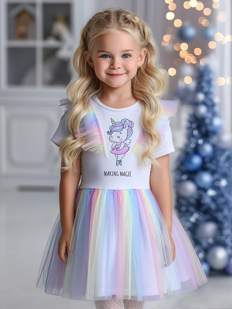 Цвет: белый+разноцветный градиент / Единорог балерина