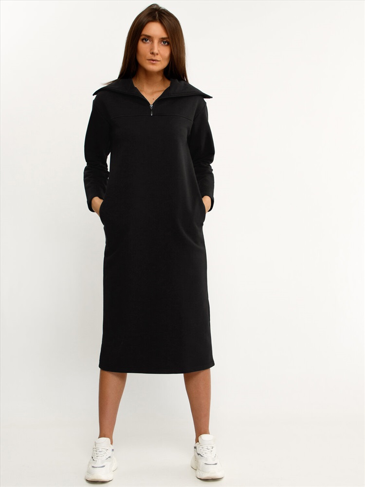Производитель: Апрель; Артикул поставщика: 1ЖПД4020335; Ткань: футер; Состав: хлопок 80%, ПЭ 20%; Сезон: Осень, Зима; Год: 2022; Страна: Россия; Российский размер: 42; Рост: 164; Обхват груди: 84 Стильное платье из плотного хлопкового полотна. Длинный рукав со спущенным плечом, высокий ворот на молнии, карманы в боковых швах. Уход: только машинная стирка (руками не стирать!) при температуре 40 градусов, без предварительного замачивания.