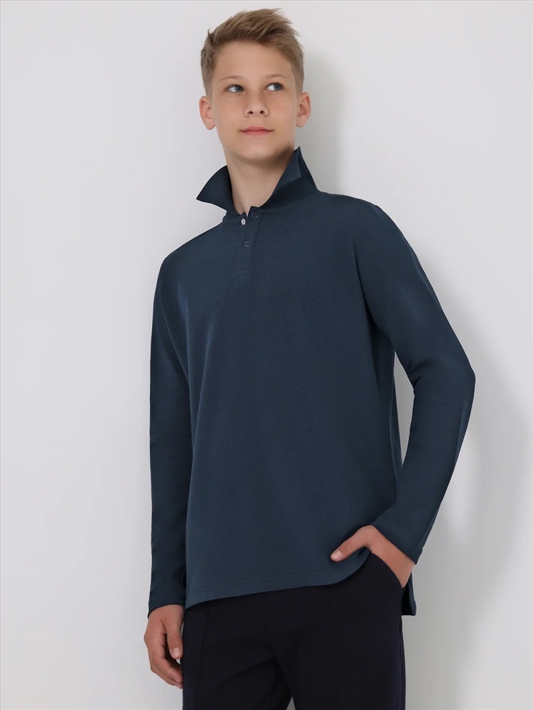 Поло для мальчика выполнено из хлопкового полотна. Изделие с длинными рукавами и застежкой на кнопки. Отличный вариант для школы! Уход: только машинная стирка (руками не стирать!) при температуре 40 градусов, без предварительного замачивания.